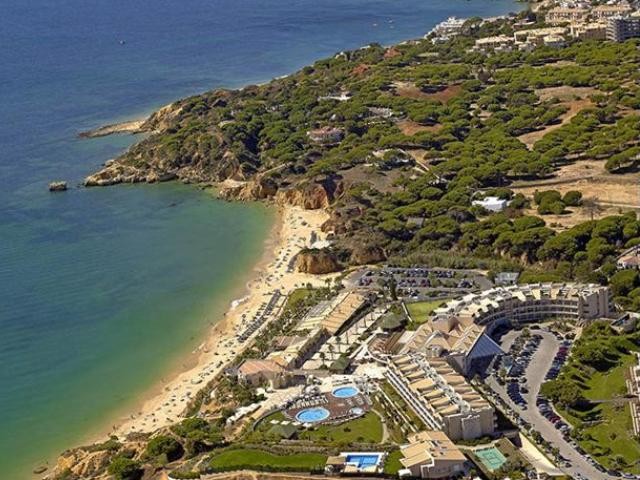 Get a holiday discount room or apartment rate at the luxury 5 Star Grande Real Santa Eulalia Hotel Resort & Spa with direct access to the beach on the east side of Albufeira at Praia da Eulalia in the Algarve. The Resort offers 344 air-conditioned rooms for 2 persons and one-bedroom family apartment for 2 adults and two children. Each hotel bedroom and apartment has balconies with either an ocean or garden views. The spacious 1.000mts2 Real Spa offers an indoor pool, various treatments, massage, plus sauna and steam bath, and there is also a Fitness Centre.