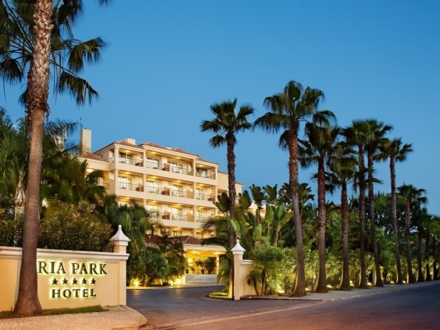 Get your holiday discount room rate at the 5 Star luxury Ria Park Hotel and Spa located between the two resorts, Quinta do Lago and Vale do Lobo in the central Algarve. The hotel has 175 comfortable suites each providing holiday accommodation for two adults and one child. The Ria Park Hotel and Spa is set in attractive lush gardens. The Ria Park Hotel Spa has a large range of massages and beauty treatments for its guests. The modern comfortable suites are air-conditioned have balconies, satellite TV, radio, direct dial phones, a mini-bar, a safe, luxurious bathrooms and internet access.